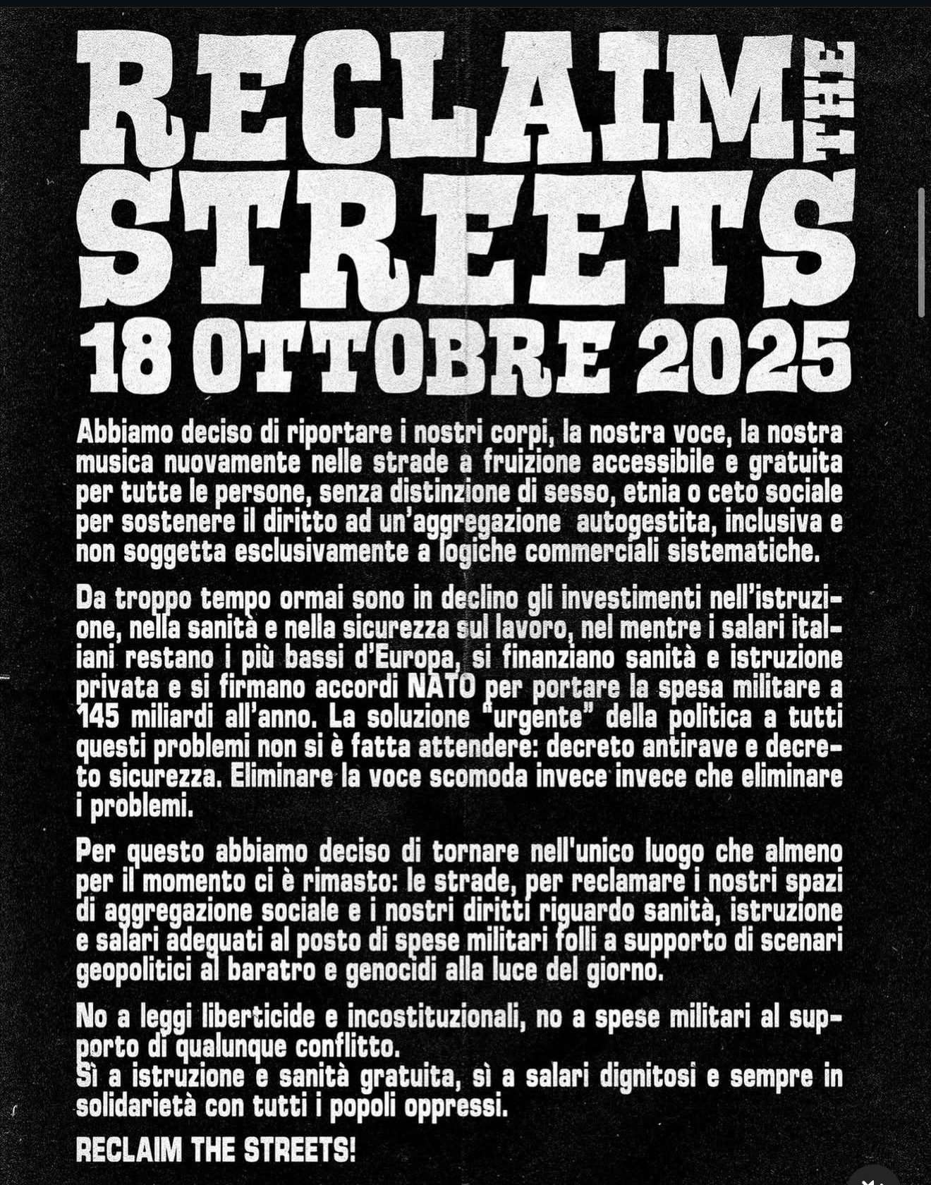 Non mancano le perplessità tra residenti e commercianti di zona, che temono l’ennesima giornata di disagi spacciata per “riappropriazione dello spazio pubblico”. Al di là della musica, infatti, il messaggio politico dichiarato dai promotori, con toni spesso antagonisti verso le istituzioni.
